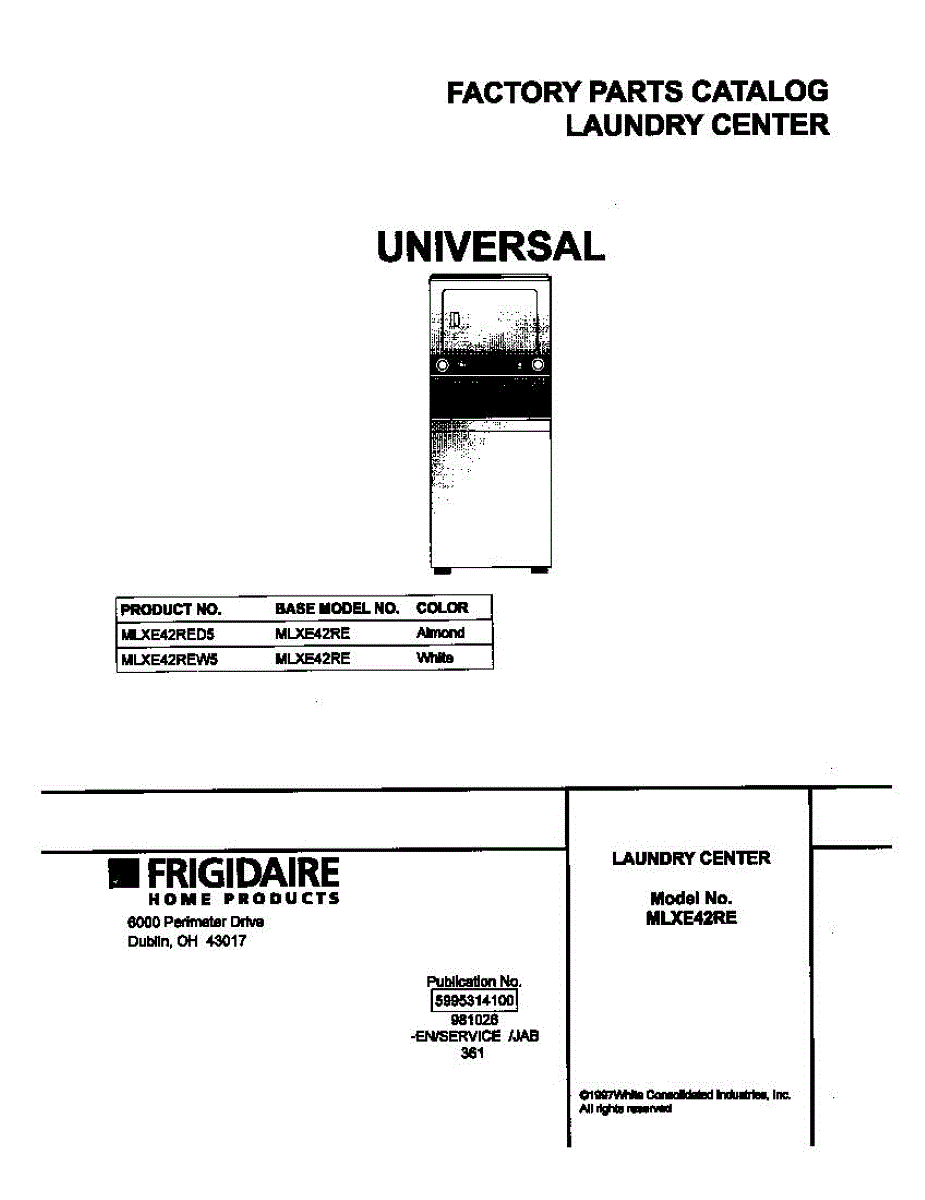 Parts for Frigidaire MLXE42RED5: 01 - Cover Parts
