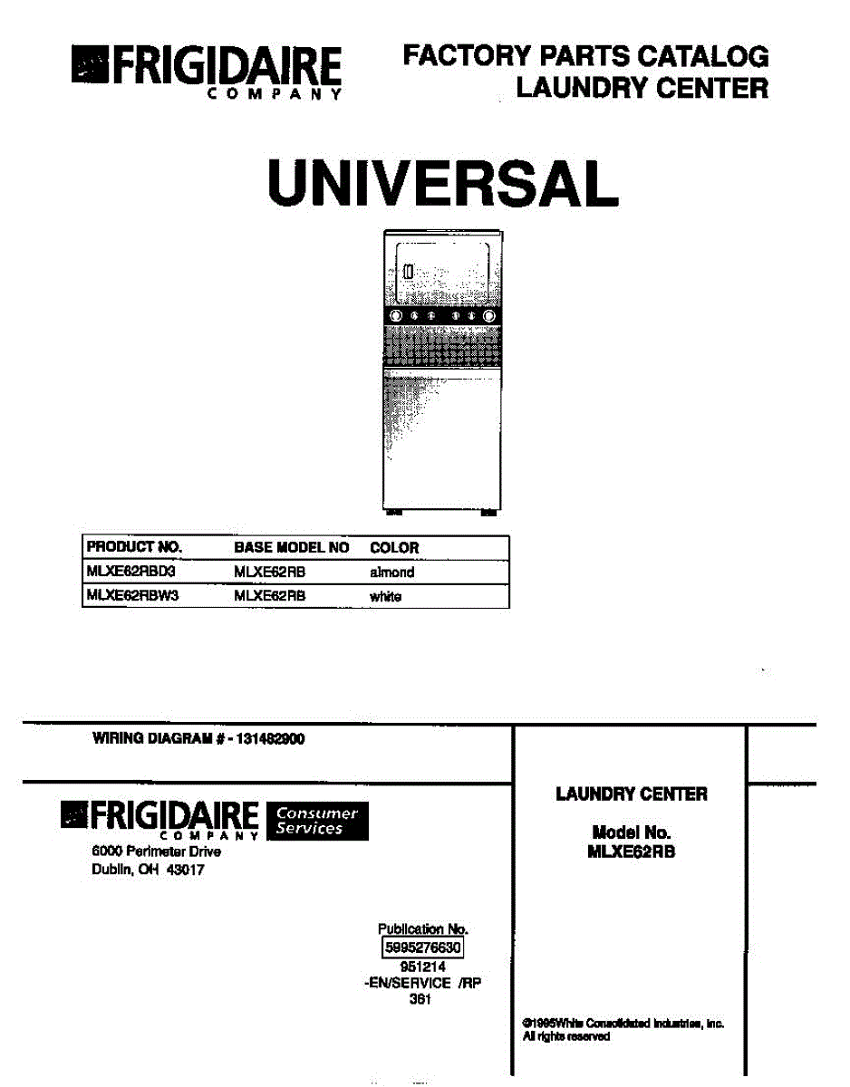 Parts for Frigidaire MLXE62RBW3: 01 - Cover Parts