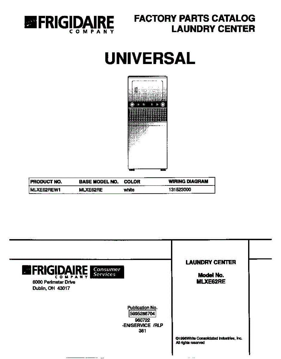 Parts for Frigidaire MLXE62REW1: 01 - Cover Parts