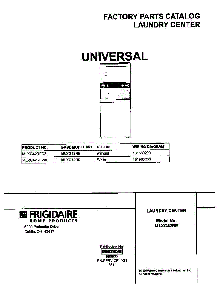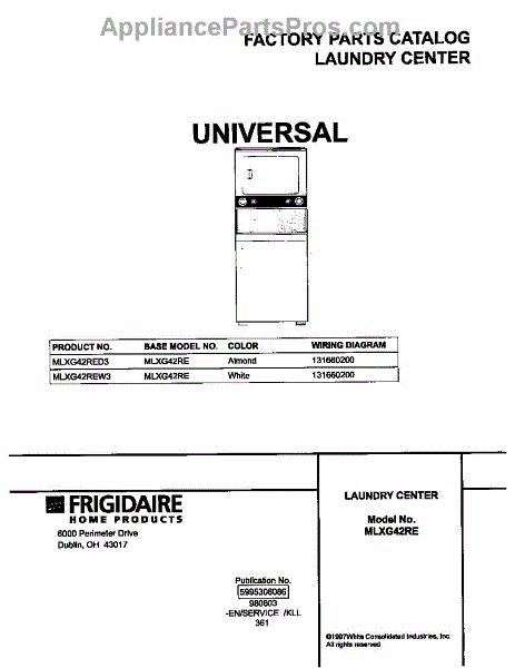 Parts for Frigidaire MLXG42REW3: 01 - Cover Parts