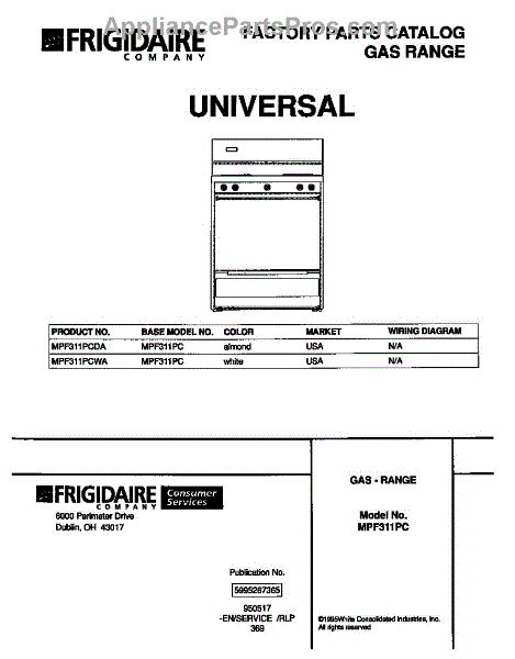 Parts for Frigidaire MPF311PCWA: 01 - Cover Parts