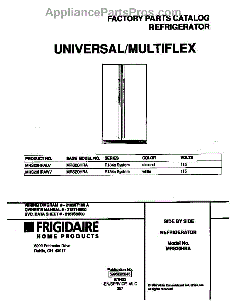 Parts for Frigidaire MRS20HRAD7: 01 - Cover Parts