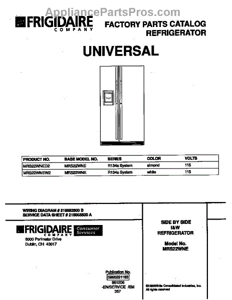 Parts for Frigidaire MRS22WNEW2: 01 - Cover Parts