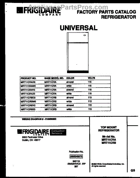 Parts for Frigidaire MRT11CRAZ0: 01 - Cover Parts