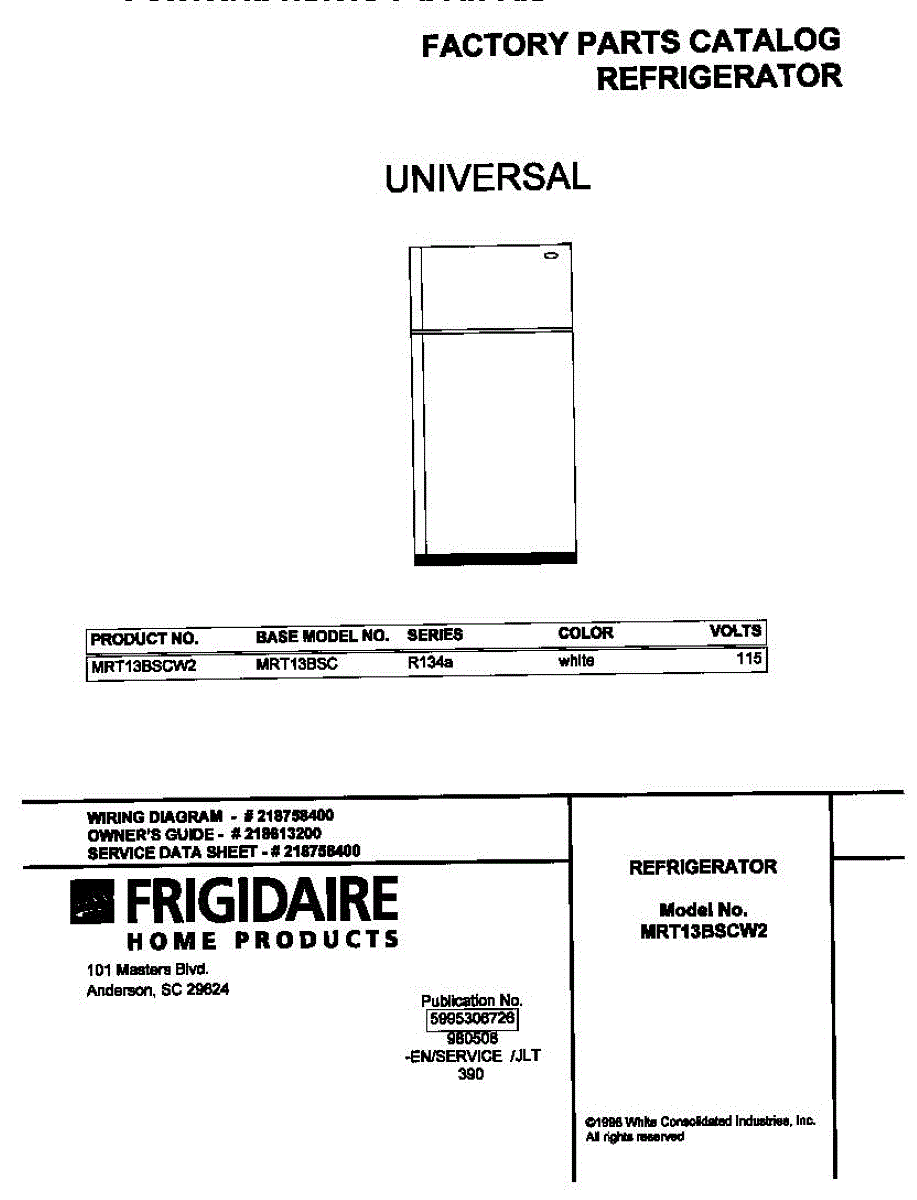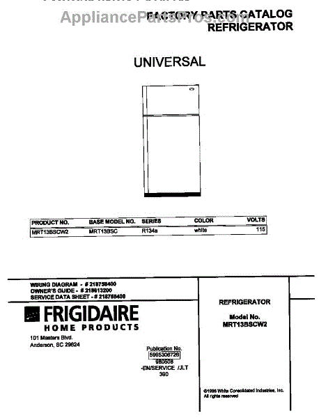 Parts for Frigidaire MRT13BSCW2: 01 - Cover Parts