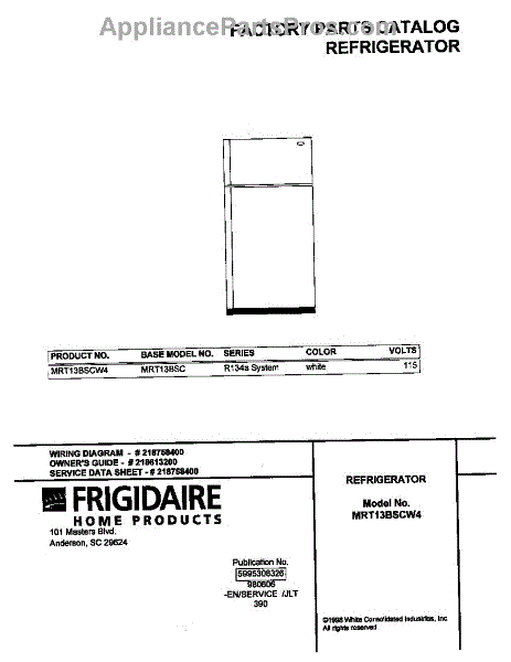 Parts for Frigidaire MRT13BSCW4: 01 - Cover Parts