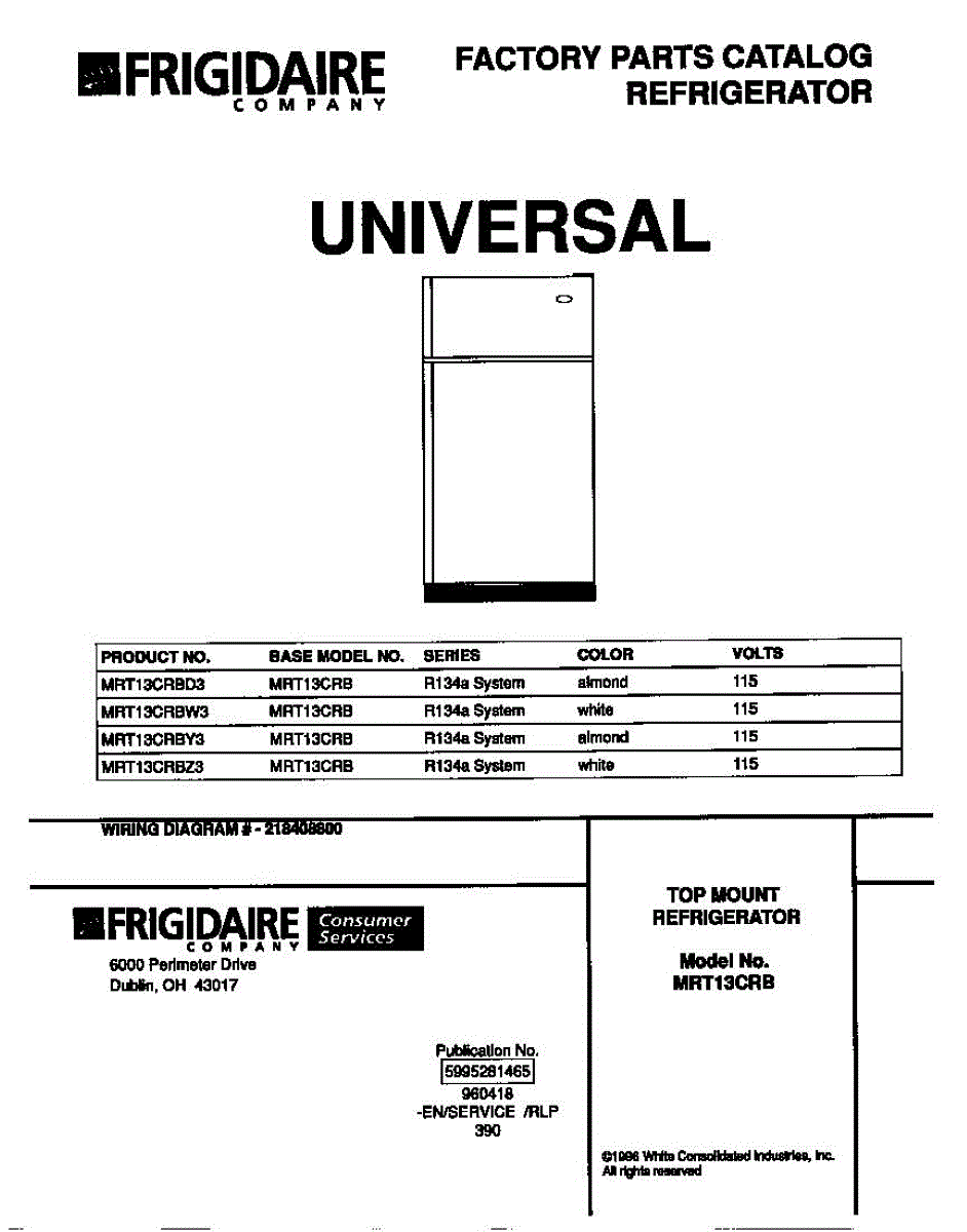 Parts for Frigidaire MRT13CRBZ3: 01 - Cover Parts