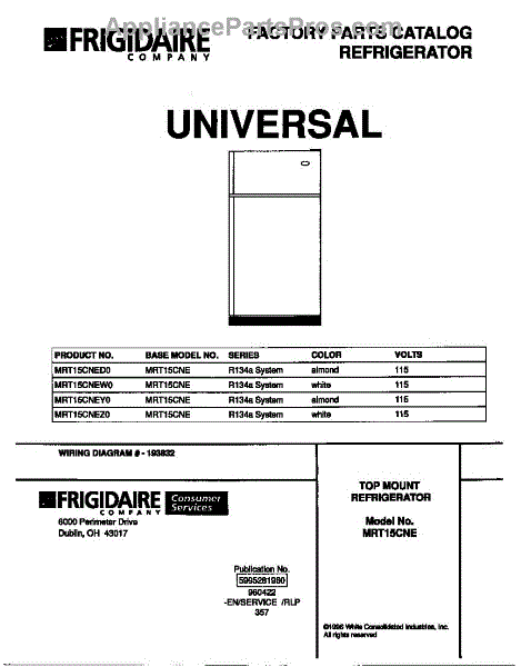 Parts for Frigidaire MRT15CNED0: 01 - Cover Parts