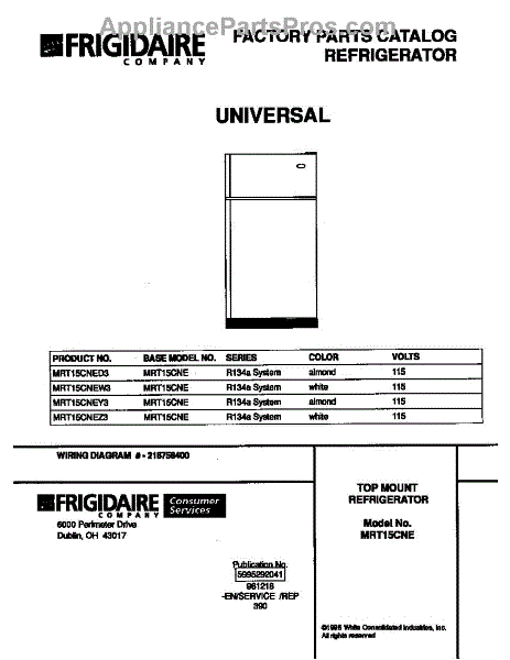 Parts for Frigidaire MRT15CNED3: 01 - Cover Parts
