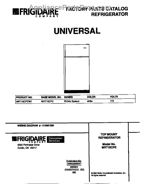 Parts for Frigidaire MRT15CPEW1: 01 - Cover Parts