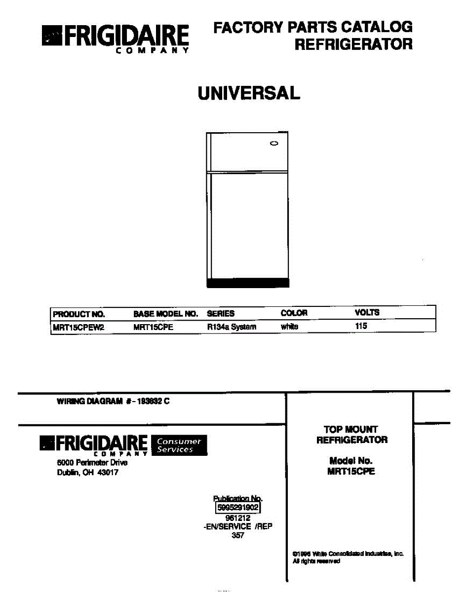 Parts for Frigidaire MRT15CPEW2: 01 - Cover Parts