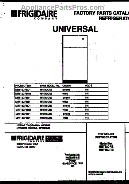 Parts for Frigidaire MRT15CRBD1: 01 - Cover Parts