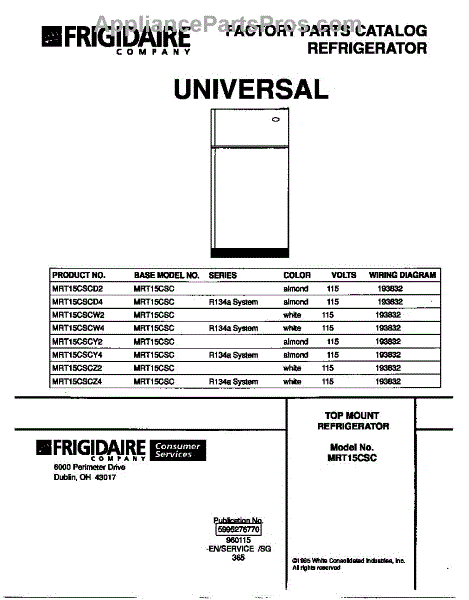 Parts for Frigidaire MRT15CSCW4: 01 - Cover Parts