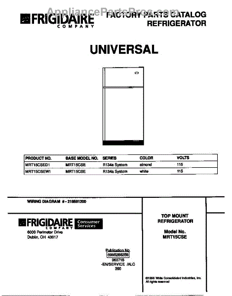 Parts for Frigidaire MRT15CSED1: 01 - Cover Parts