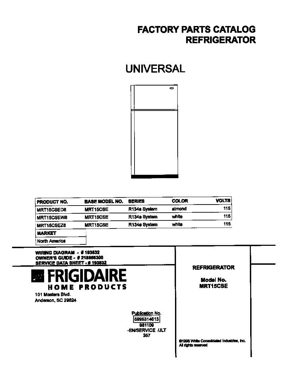 Parts for Frigidaire MRT15CSEW8: 01 - Cover Parts