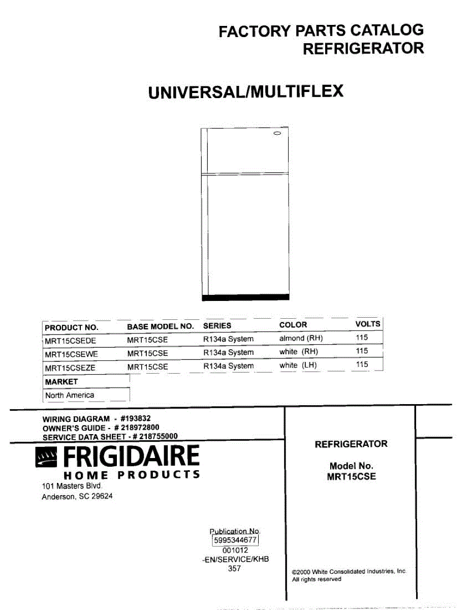 Parts for Frigidaire MRT15CSEWE: 01 - Cover Parts