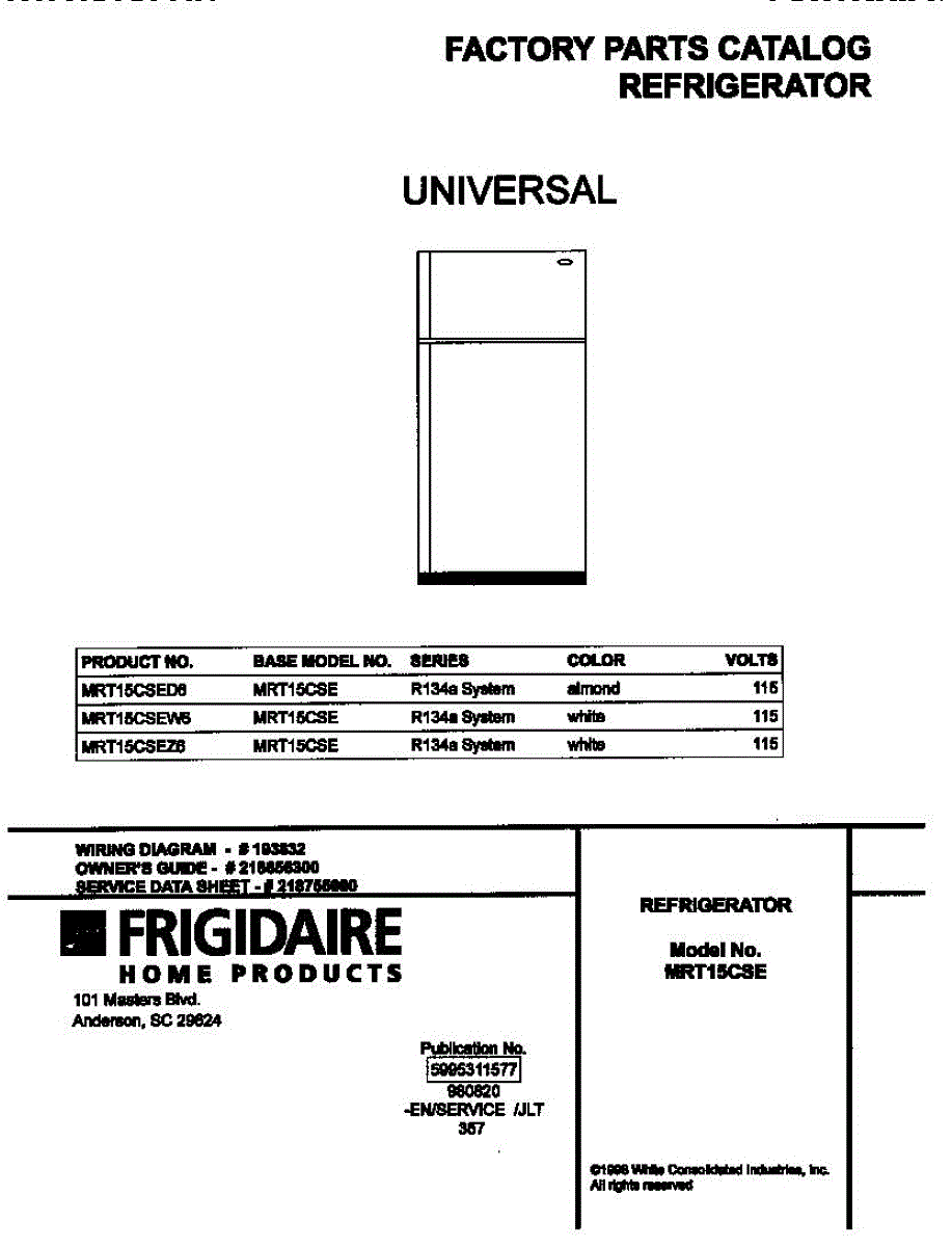 Parts for Frigidaire MRT15CSEZ6: 01 - Cover Parts