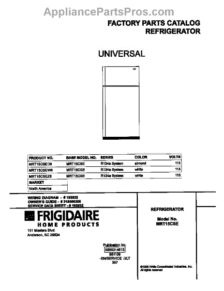 Frigidaire Refrigerator Parts