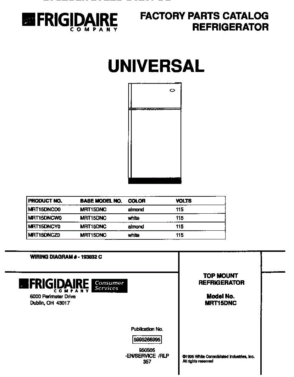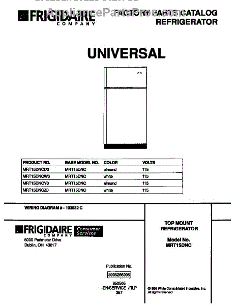 Parts for Frigidaire MRT15DNCW0: 01 - Cover Parts