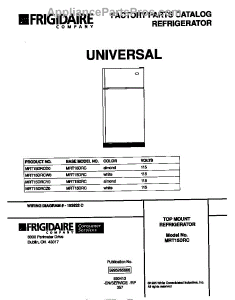 Parts for Frigidaire MRT15DRCD0: 01 - Cover Parts