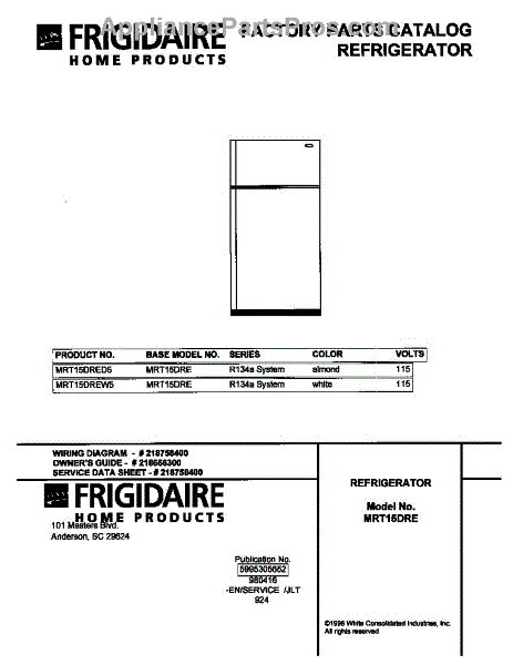Parts for Frigidaire MRT15DRED5: 01 - Cover Parts