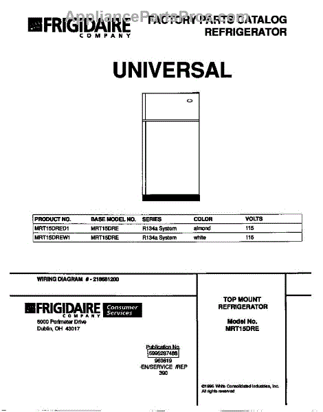 Parts for Frigidaire MRT15DREW1: 01 - Cover Parts