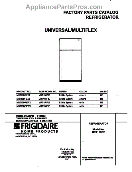 Parts for Frigidaire MRT15DREW2: 01 - Cover Parts