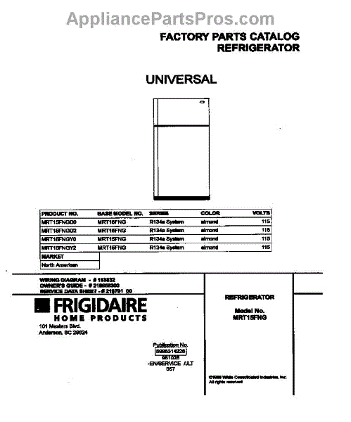 Parts for Frigidaire MRT15FNGD0: 01 - Cover Parts
