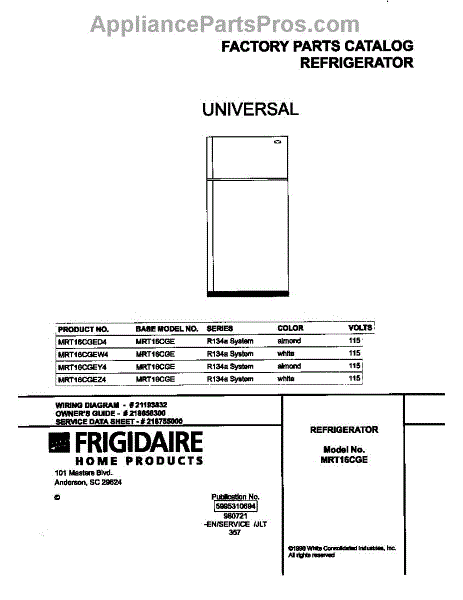 Parts for Frigidaire MRT16CGEY4: 01 - Cover Parts