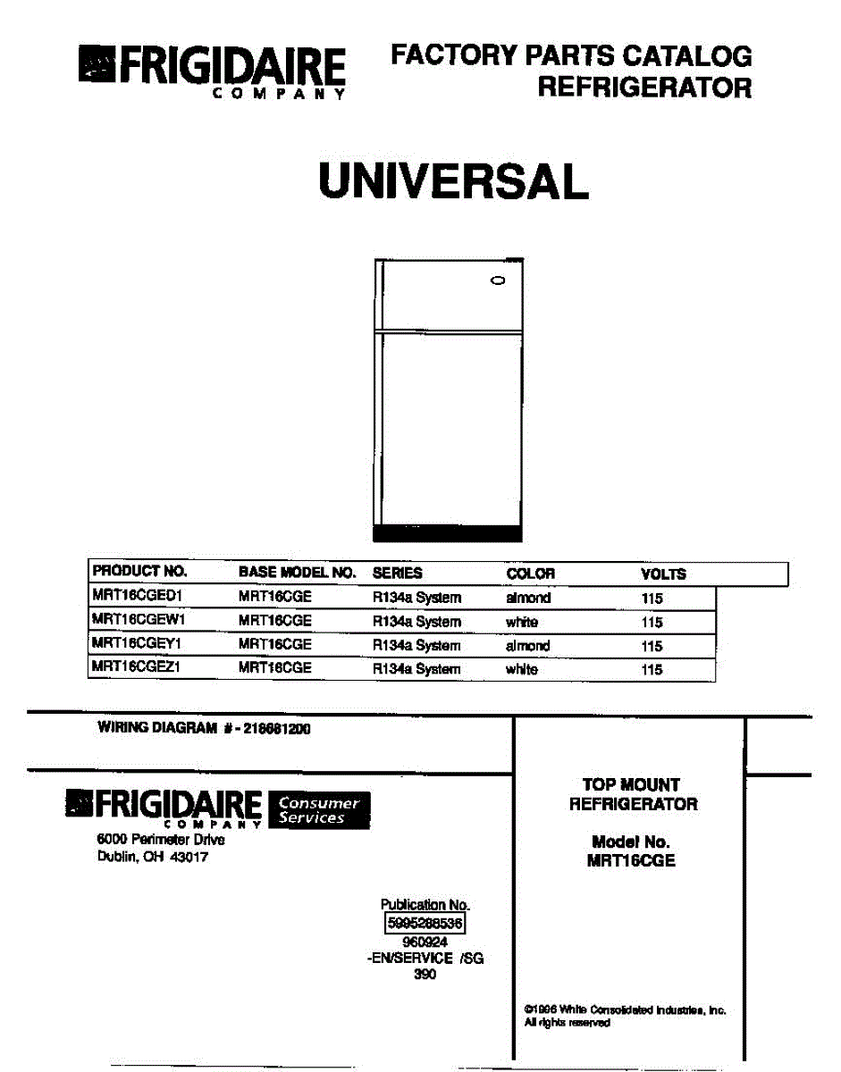 Parts for Frigidaire MRT16CGEZ1: 01 - Cover Parts