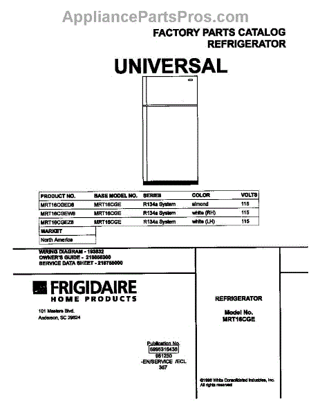 Parts for Frigidaire MRT16CGEZ8: 01 - Cover Parts