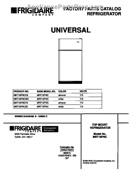 Parts for Frigidaire MRT16PNCW0: 01 - Cover Parts