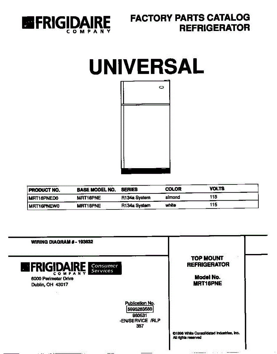Parts for Frigidaire MRT16PNED0: 01 - Cover Parts