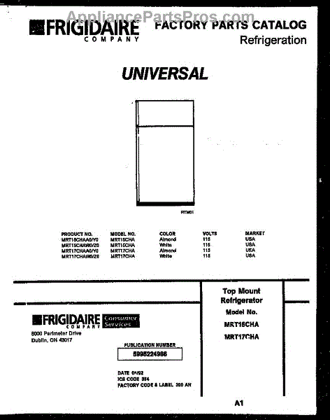 Parts for Frigidaire MRT17CHAA0: 01 - Cover Parts