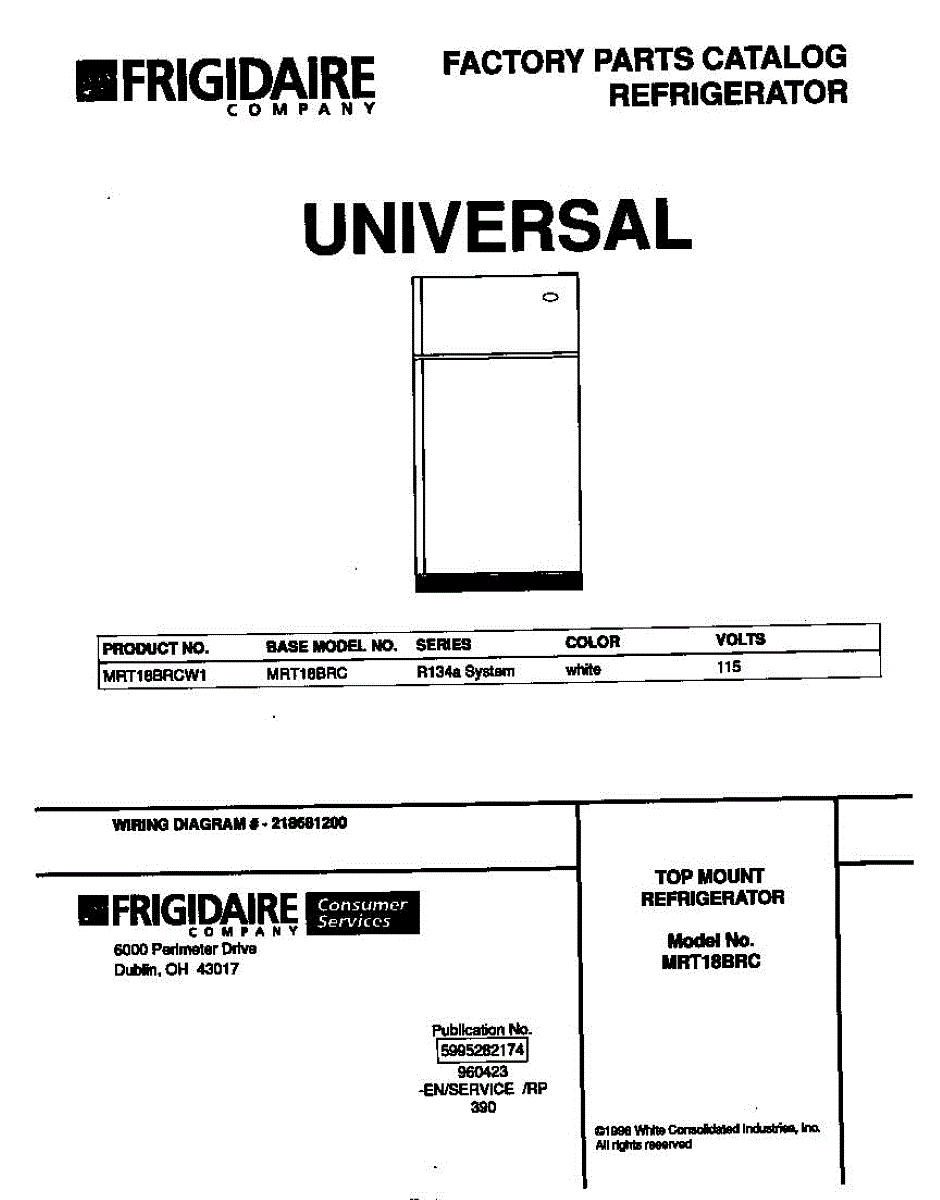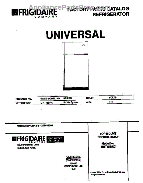 Parts for Frigidaire MRT18BRCW1: 01 - Cover Parts
