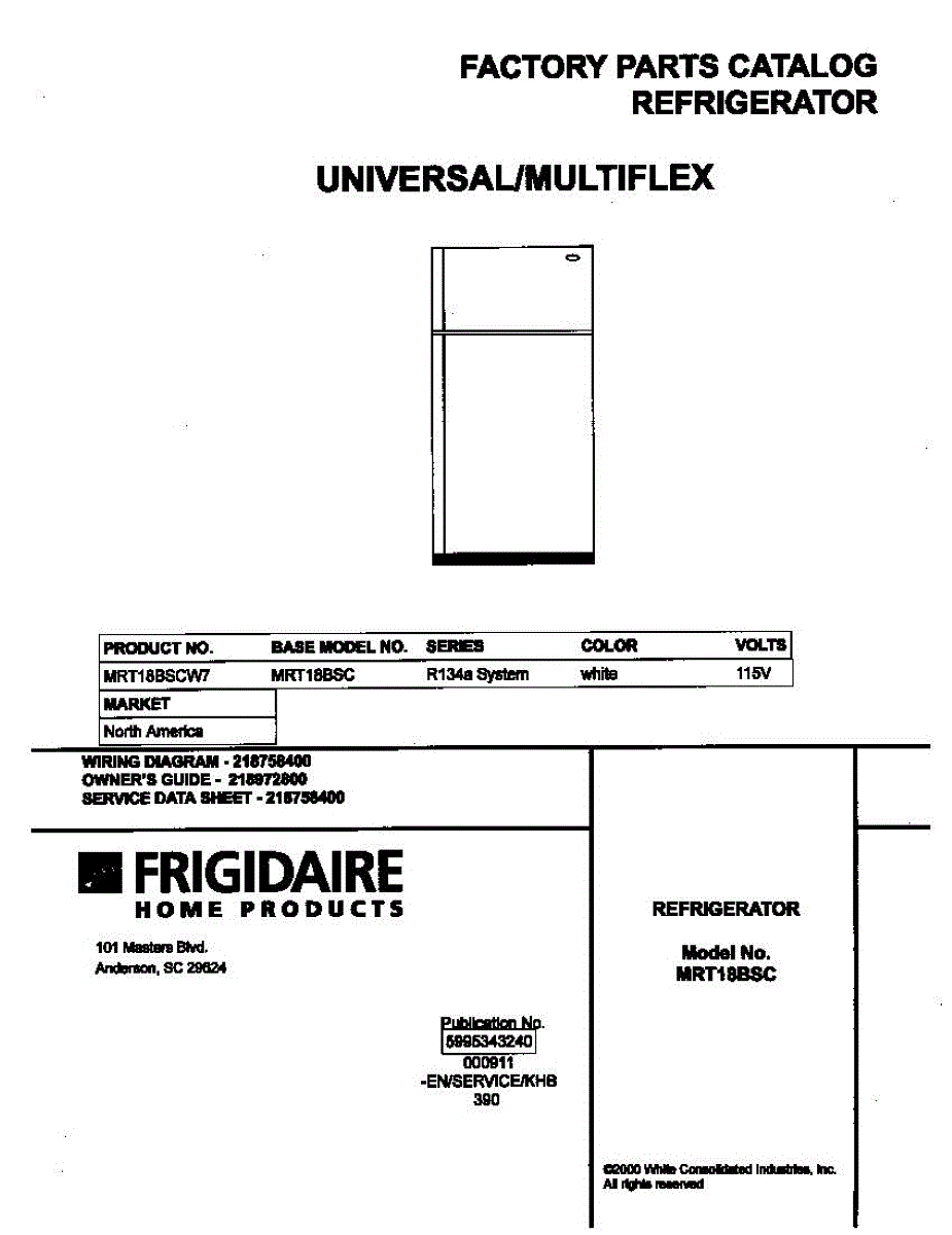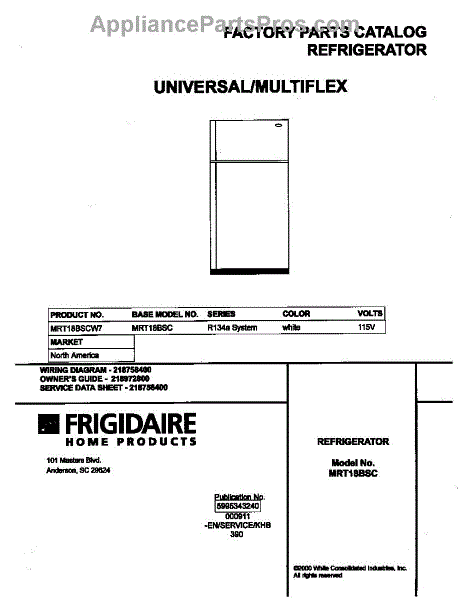 Parts for Frigidaire MRT18BSCW7: 01 - Cover Parts