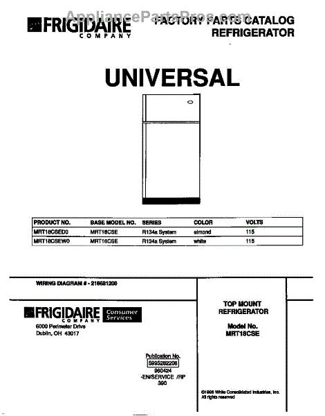 Parts for Frigidaire MRT18CSEW0: 01 - Cover Parts