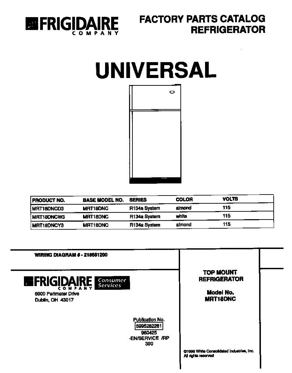 Parts for Frigidaire MRT18DNCD3: 01 - Cover Parts