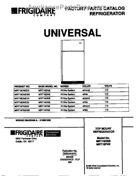 Parts for Frigidaire MRT18DNEW0: 01 - Cover Parts