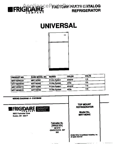 Parts for Frigidaire MRT18DNEW3: 01 - Cover Parts