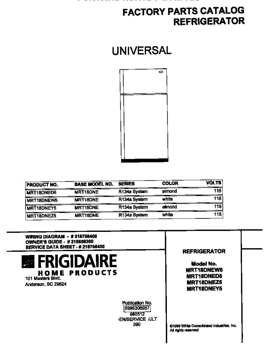 Parts for Frigidaire MRT18DNEW5: 01 - Cover Parts