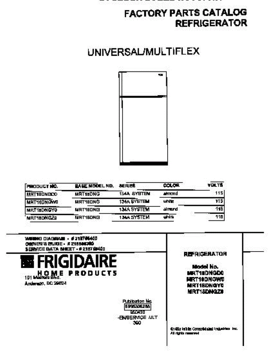 Parts for Frigidaire MRT18DNGW0: 01 - Cover Parts