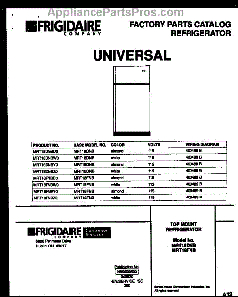 Parts for Frigidaire MRT18FNBY0: 01 - Cover Parts