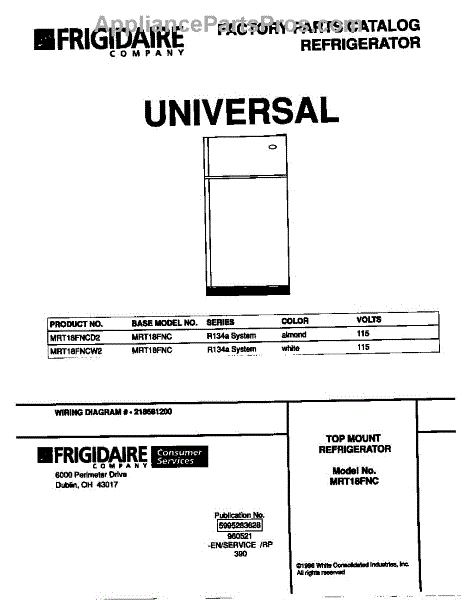 Parts for Frigidaire MRT18FNCD2: 01 - Cover Parts