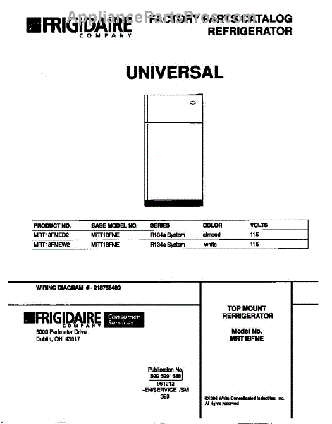 Parts for Frigidaire MRT18FNED2: 01 - Cover Parts