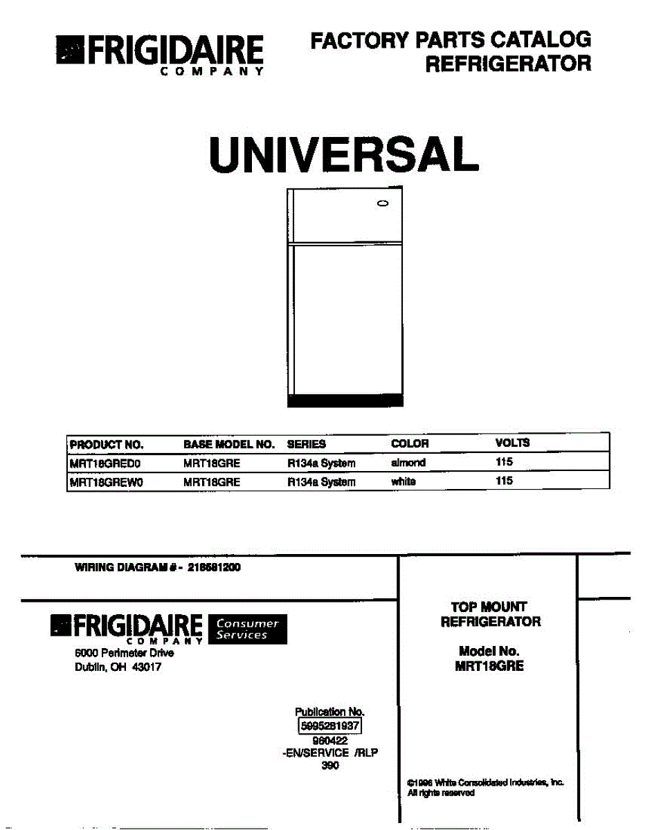 Parts for Frigidaire MRT18GREW0: 01 - Cover Parts
