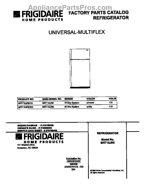 Parts for Frigidaire MRT18JRED2: 01 - Cover Parts