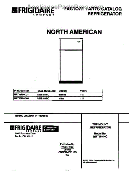 Parts for Frigidaire MRT18NNCW1: 01 - Cover Parts
