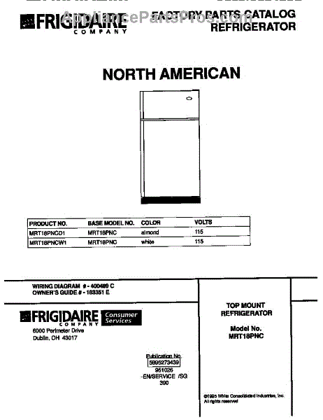 Parts for Frigidaire MRT18PNCD1: 01 - Cover Parts