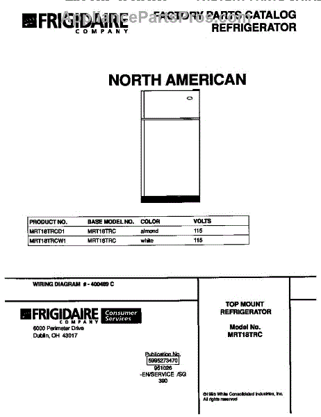 Parts for Frigidaire MRT18TRCW1: 01 - Cover Parts